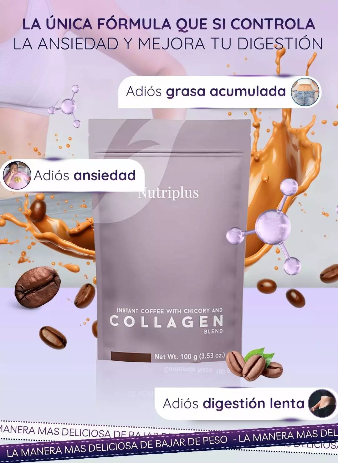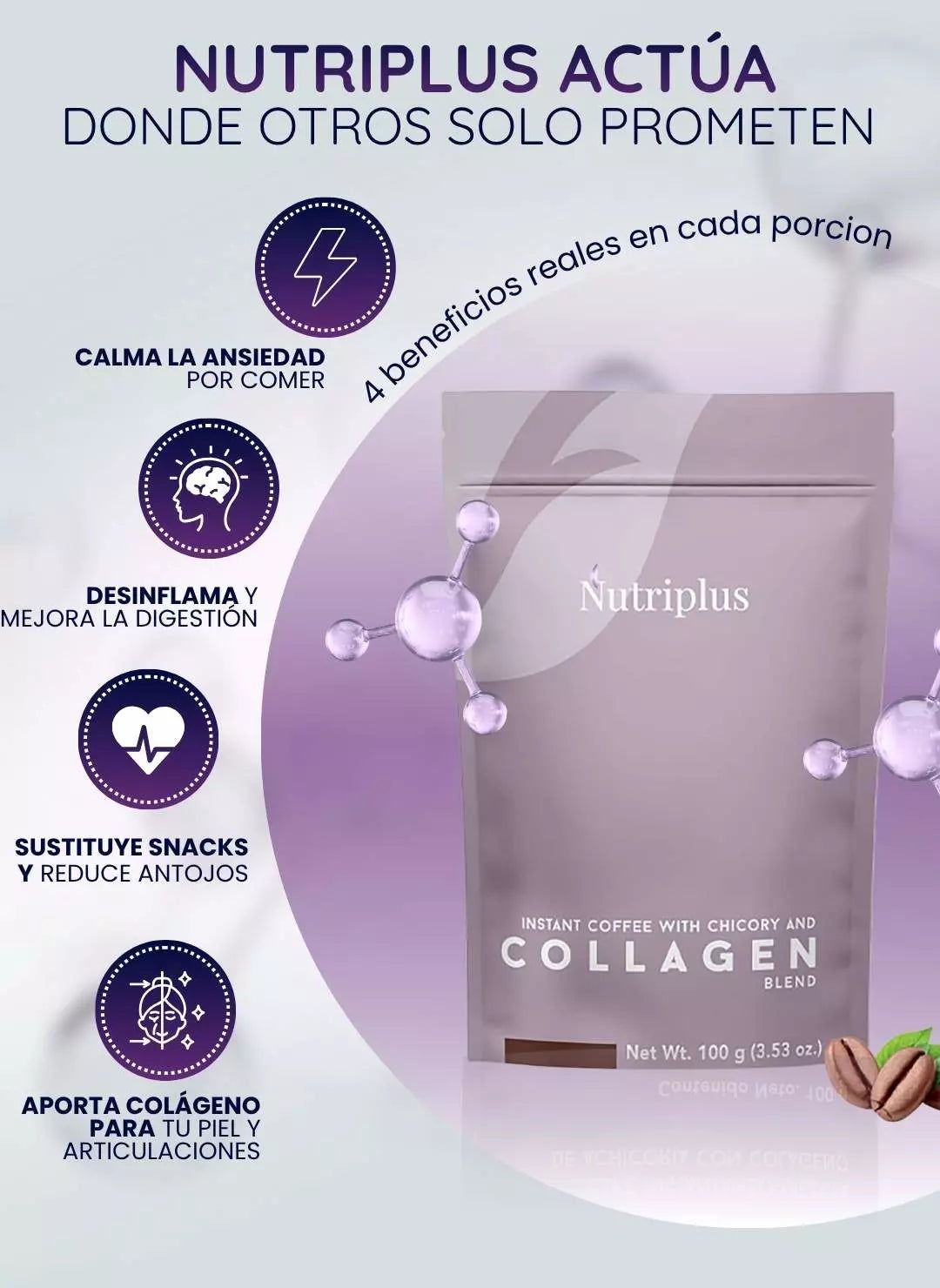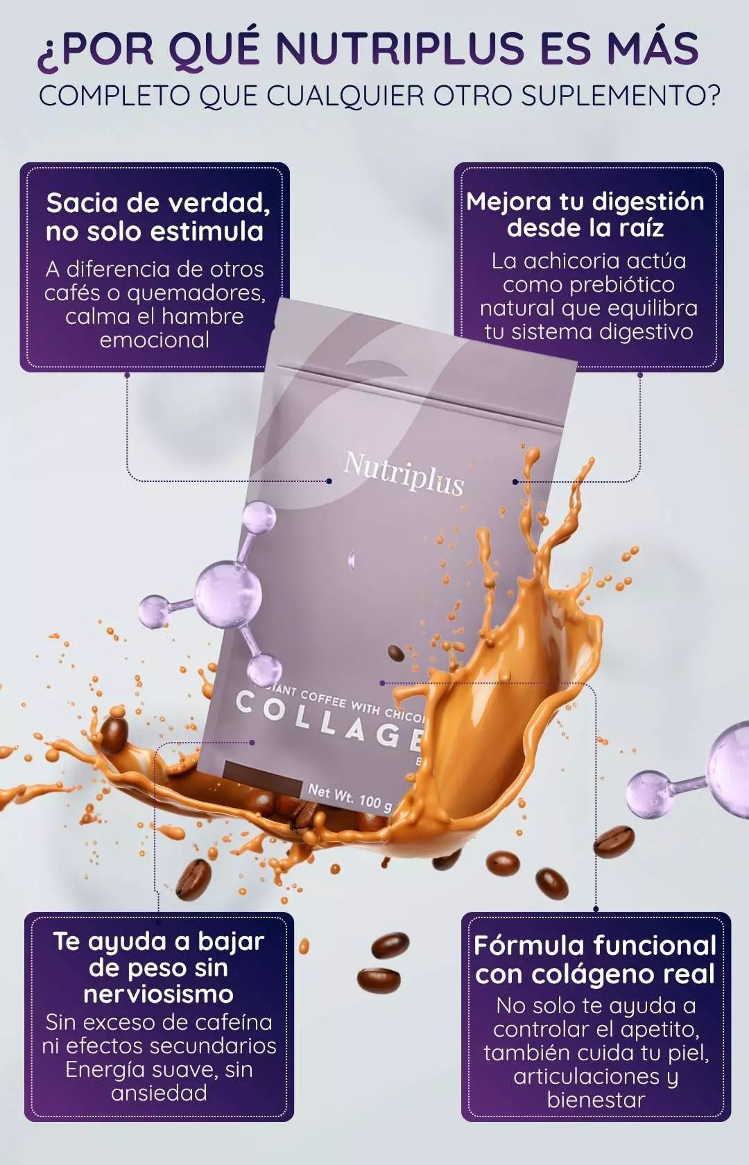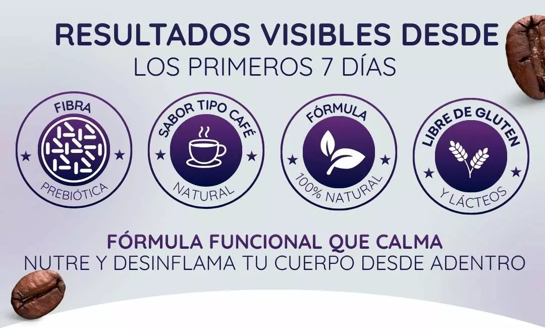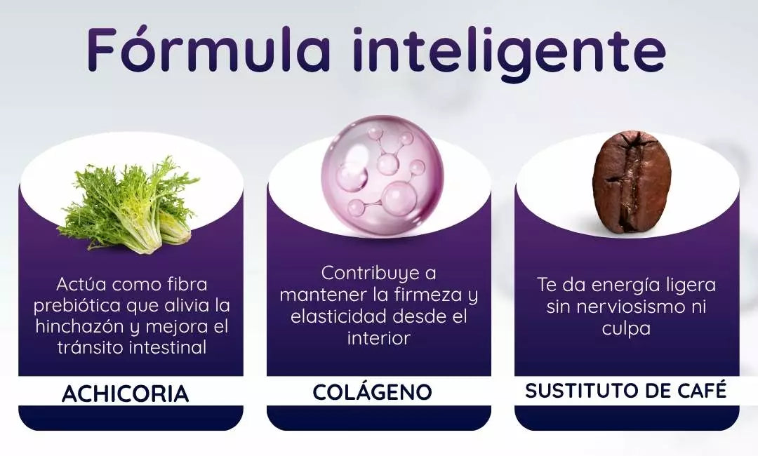 Contiene café instantáneo y raíces de achicoria — así que si eres muy sensible a la cafeína o tienes alergias a colágeno o ciertos ingredientes, conviene consultar. Tampoco está pensado como sustituto total de la alimentación o para “tratar” enfermedades